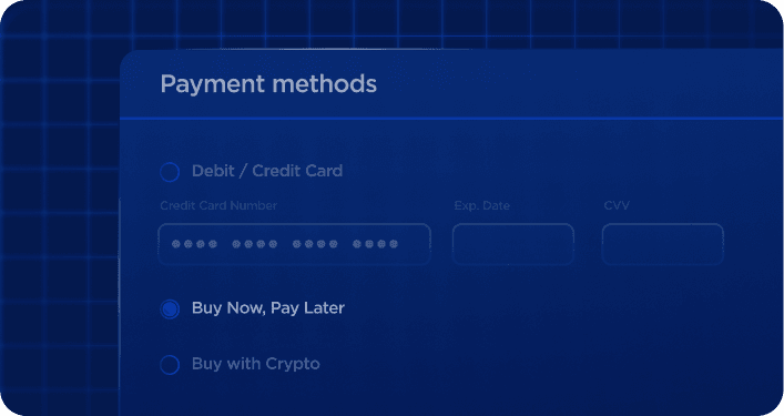 Integrieren Sie dynamische Wallet-Platzierung, „Jetzt kaufen, später bezahlen“ (BNPL) und Krypto, damit Interessierte die optimale Auswahl an Kaufmöglichkeiten direkt zur Verfügung haben.